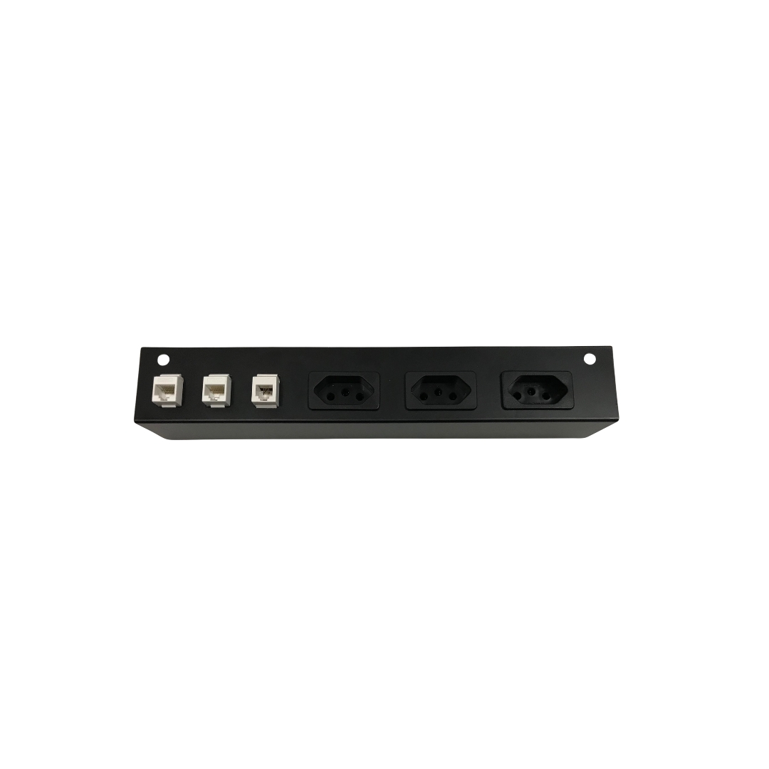 Utilizado em mesas de escritório para ligação de tomadas elétricas e pontos de rede