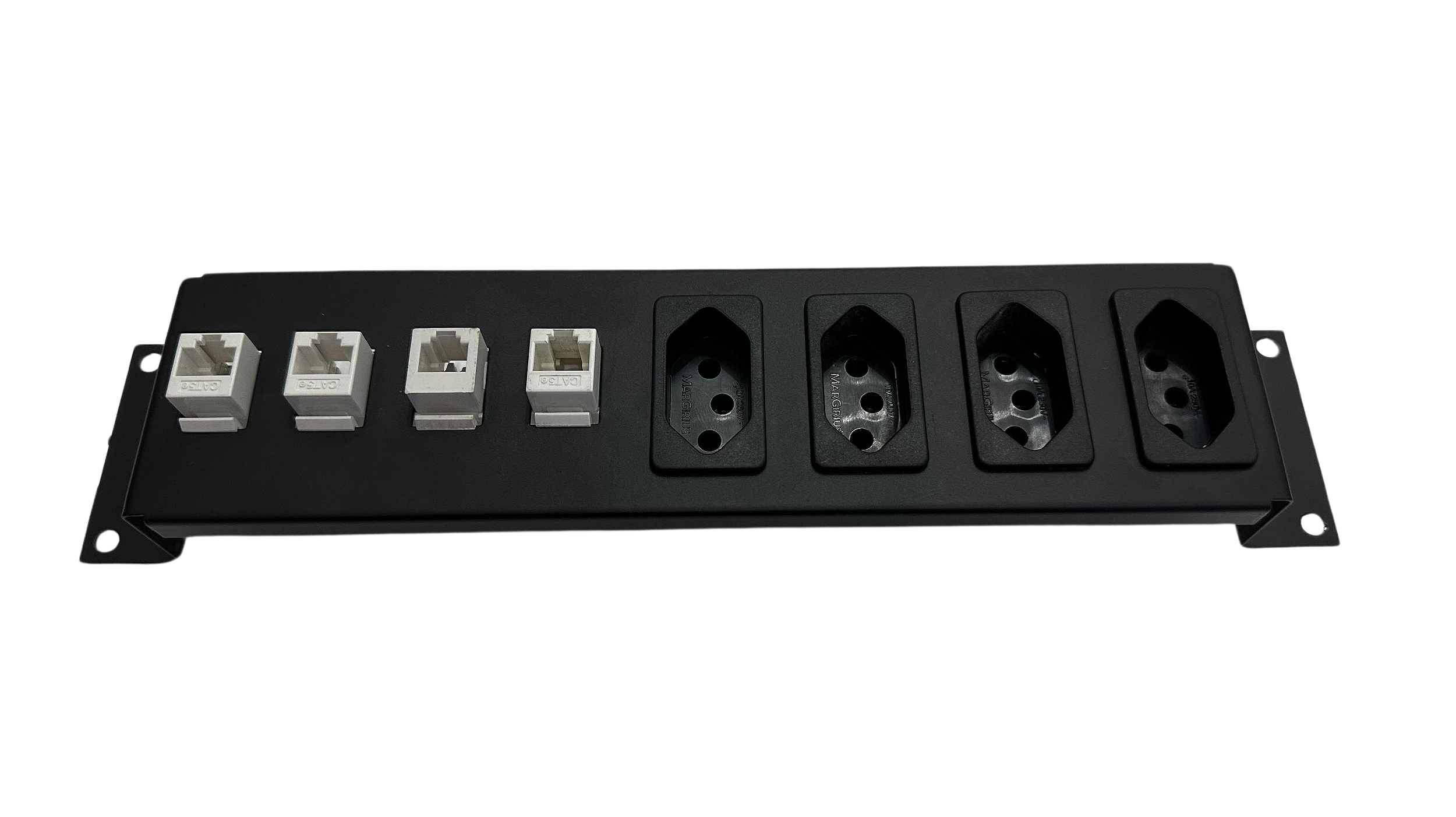 Régua Tomadas + 4 Tomadas Tpa2-3 10a Preta + 4 Rj45 Cat5e