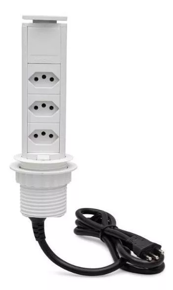 - Tomada integrada na própria torre, proporcionando mais espaço e disposição horizontal das tomadas, com acabamento estético e discreto;